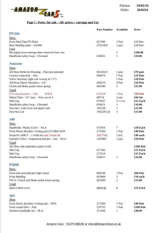 Page 7 of our Parts for Sale Listing.